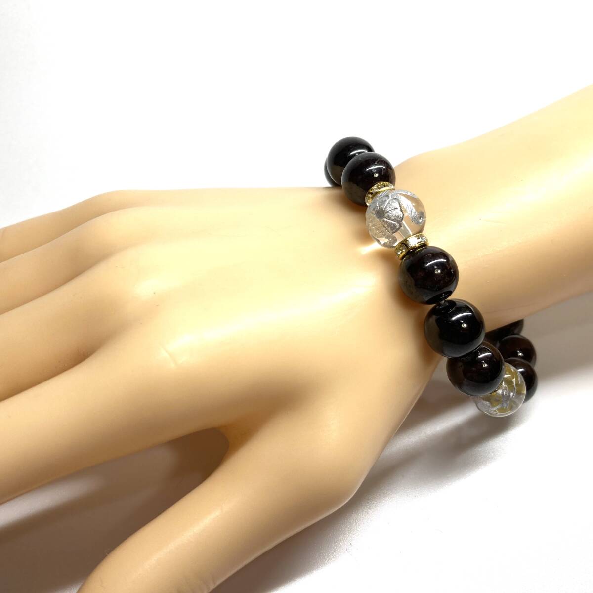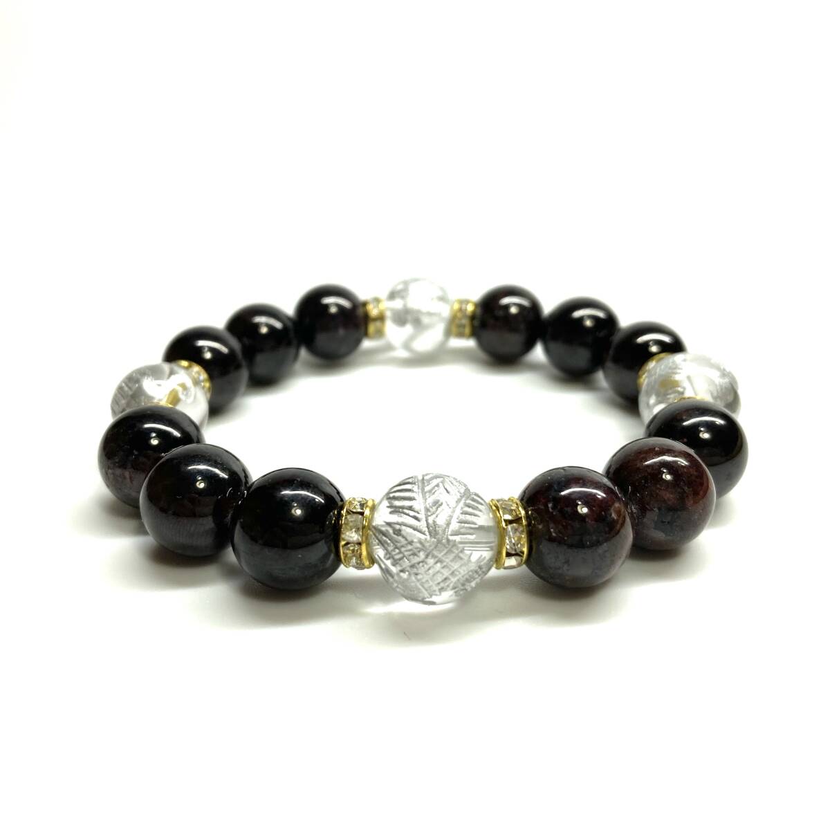 こちらは、四神獣銀彫水晶とガーネットを組み合わせたパワーストーンブレスレットです。四神獣は、中国の伝説で4つの方向(東西南北)を守護する神聖な神。四神獣、厄災から身を守り、多くの運気を呼び込むと言われております。石大きさは程よくインパクトのある12mm玉で内周 約17cmです。 数に限りがございますので気になる方はお早めにどうぞ。