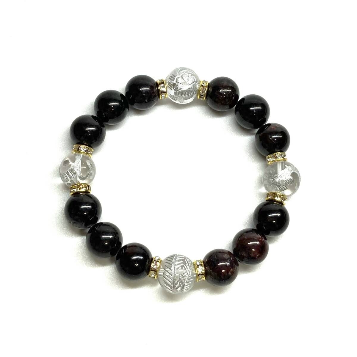 四神獣銀彫水晶×ガーネット 12mm パワーストーン ブレスレット天然石 青龍 白虎 玄武 朱雀 運気上昇 お守り 金運 四神獸 四神相応 G