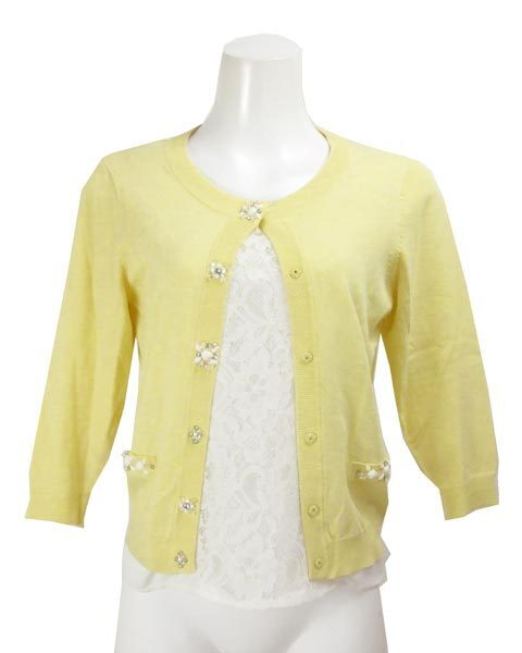 | コメント | 明るいイエローとブラウスのアンサンブル。 ボタンやポケットにビジューがついていて、華やか。 1枚ずつでもセットアップでもお使い頂けて、お得感のある アイテムです。 |