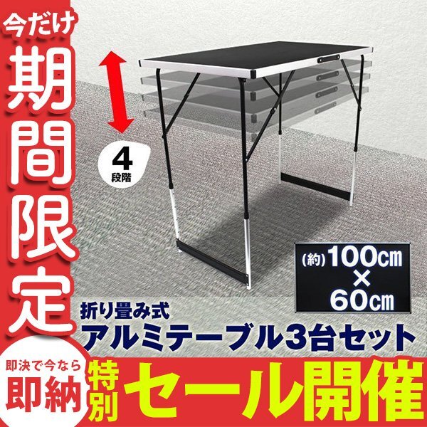 【数量限定セール】アルミテーブル 3台セット レジャー 会議テーブル 高さ調節 折りたたみ テーブル 補助テーブル 作業台 ワークデスク