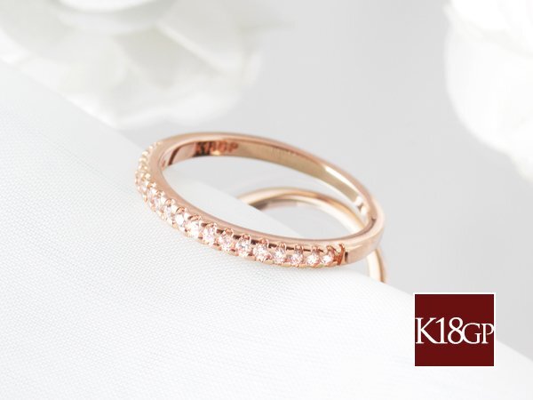 12号 / 新品 指輪 K18GP シンプル エタニティ リング 細い 18金 ピンクゴールド レディース ダイヤ CZ 細め 重ね付け プレゼント 女性
