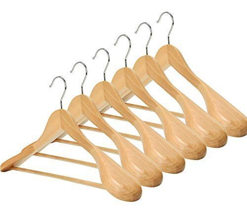 ハンガー コート用 スーツ 木製ハンガーセット 手作 洋服 天然高級木 (ナチュラル/6本)