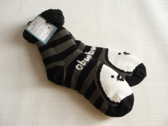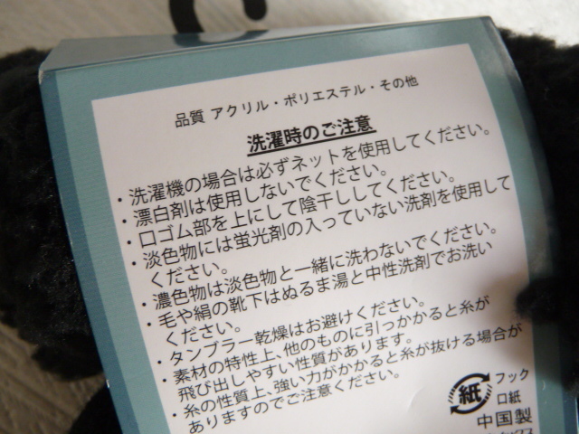 新品 ルームシューズ ソックス お文具といっしょ メンズ 25cm-27cm 紳士 男性用 裏ボア 黒 タグ付き 未使用  秋 冬 もこもこ
