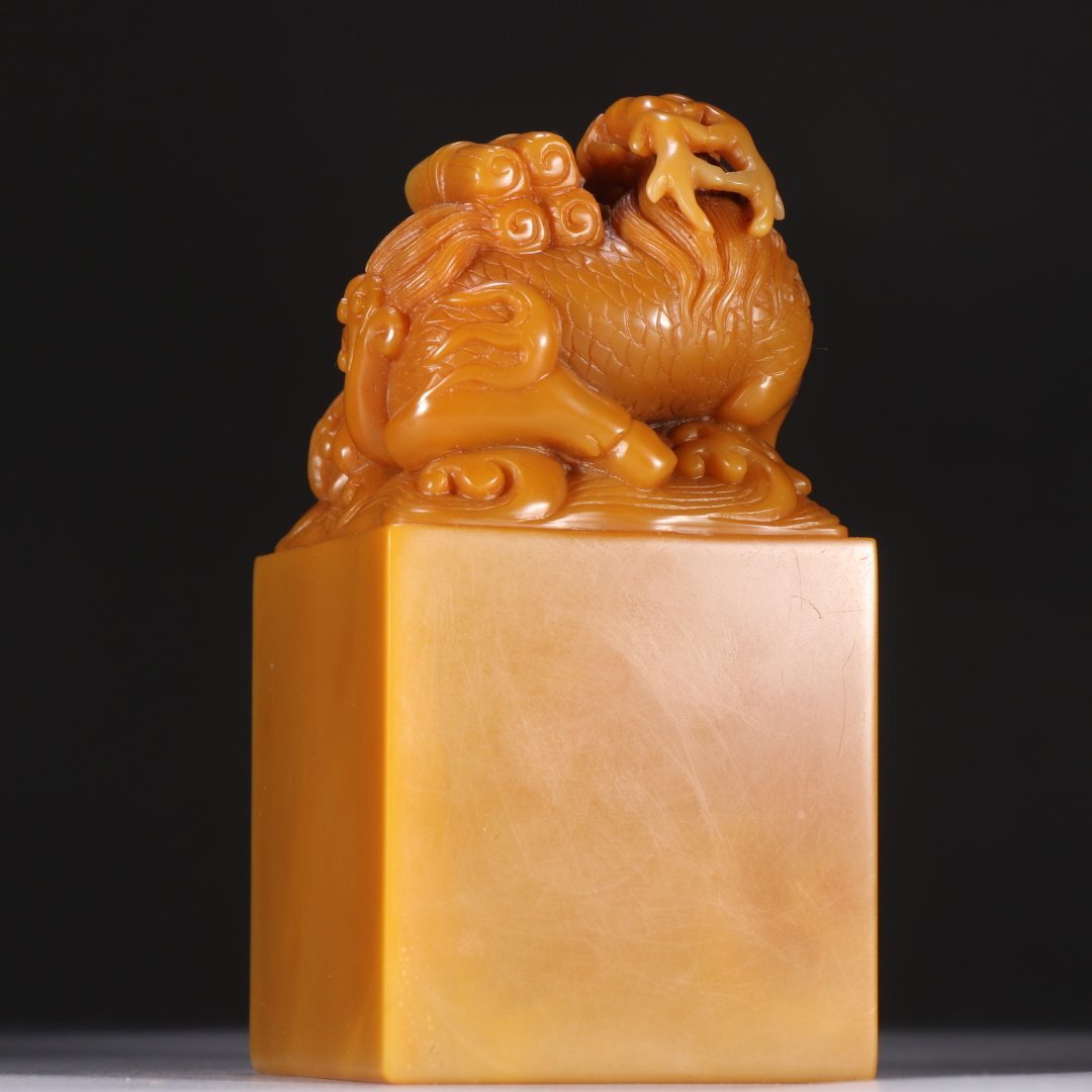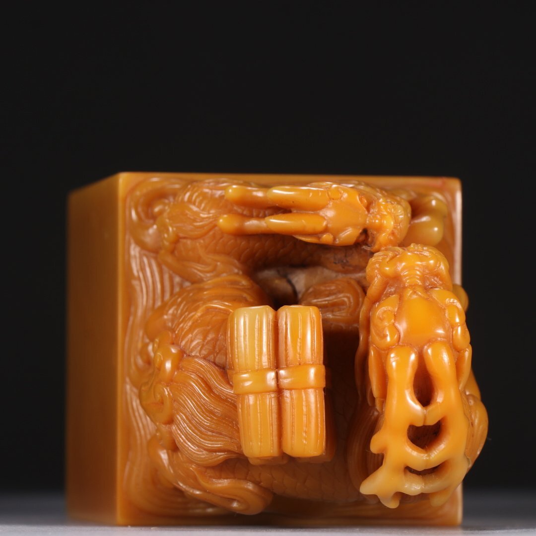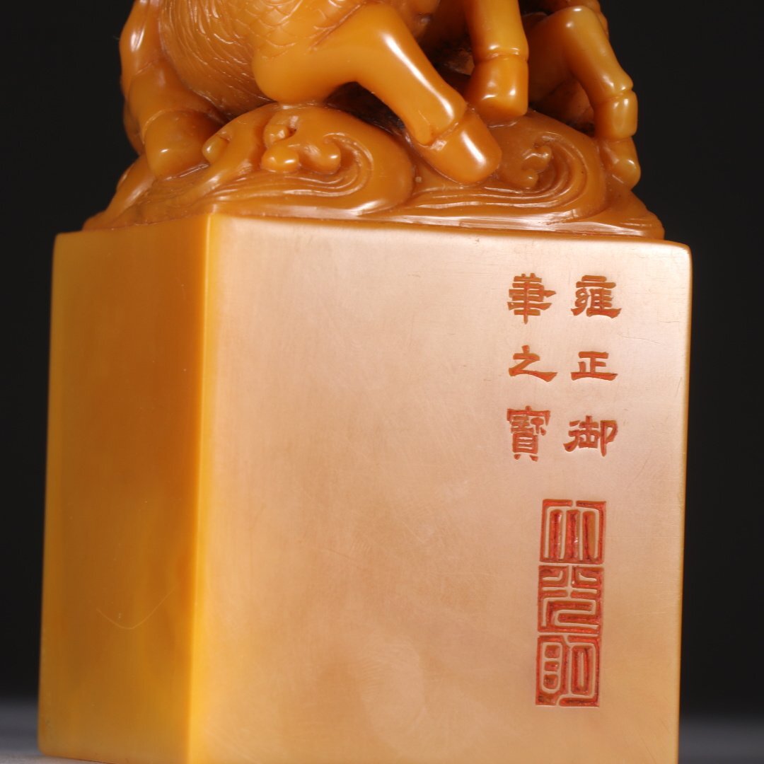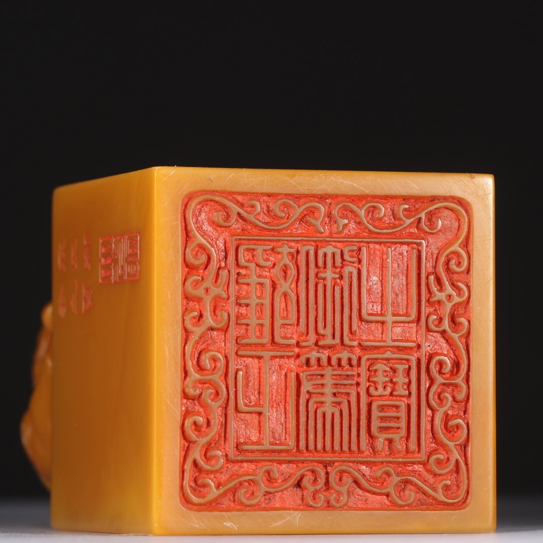 【安】清時代 雍正元年内務府造弁処監製 寿山田黄石彫 麒麟送書鈕御璽印章 印鑑 共箱 極細工 古置物 古擺件 中国古美術 時代物 330 サイズ(約寸) |