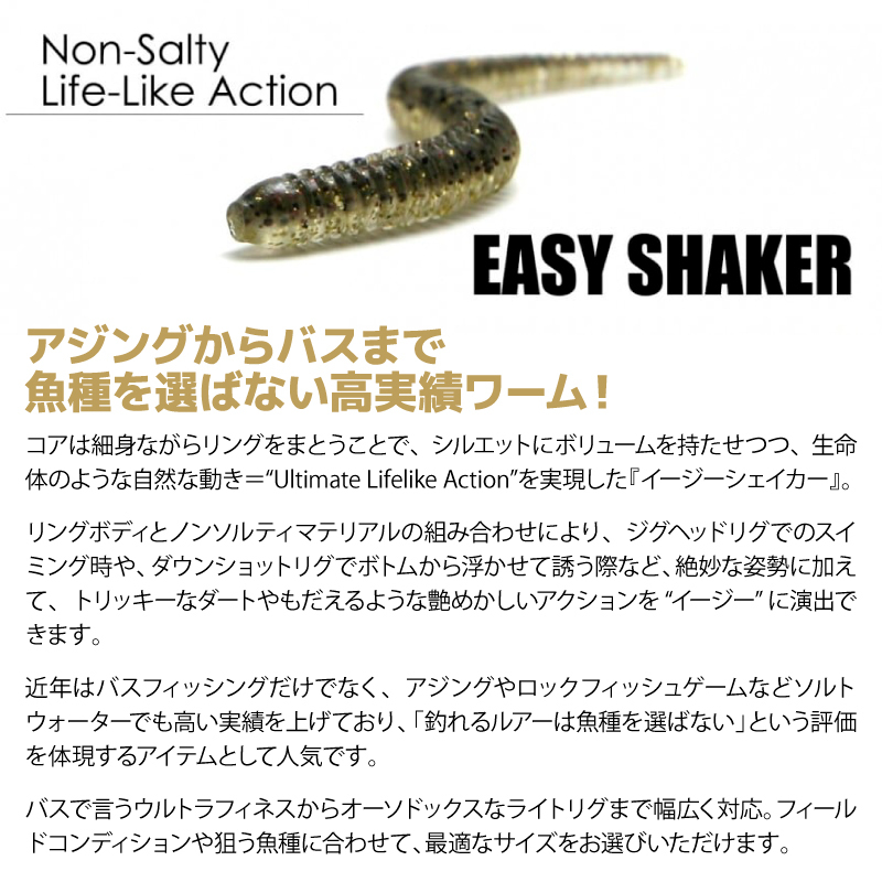 | 商品名 | ソフトルアー イージーシェイカー 2.5インチ 約0.7g 14尾入り/パック No.420プロブルーレッドパール 釣り ソフトワーム ストレートワーム アジング バス ロックフィッシュ KEITECH ケイテック | ||||||||||