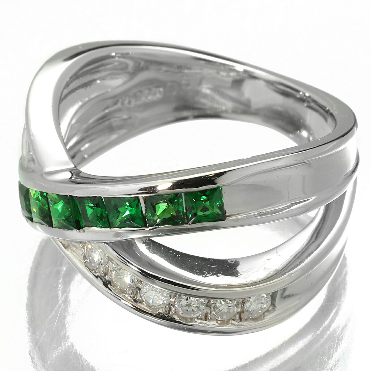 グロシュラライトガーネットとダイヤモンドが見事に融合したクロスデザインのリングです。洗練されたデザインと高品質な宝石の組み合わせが、エレガントでありながらも個性的なスタイルを演出します。