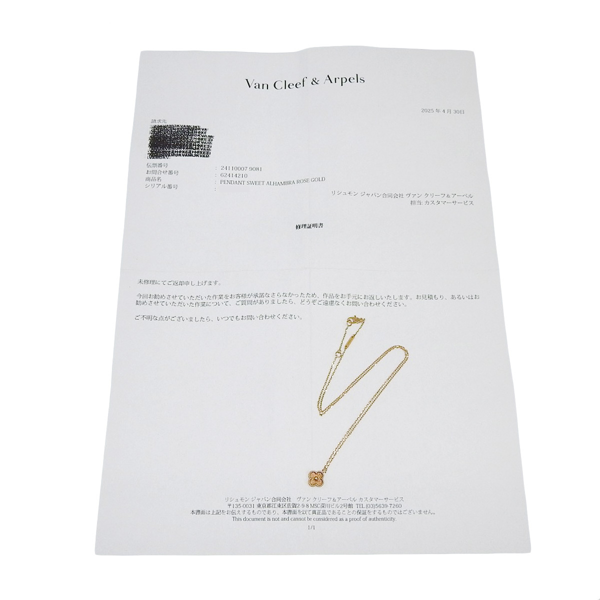 【付属品】修理証明書(未修理)