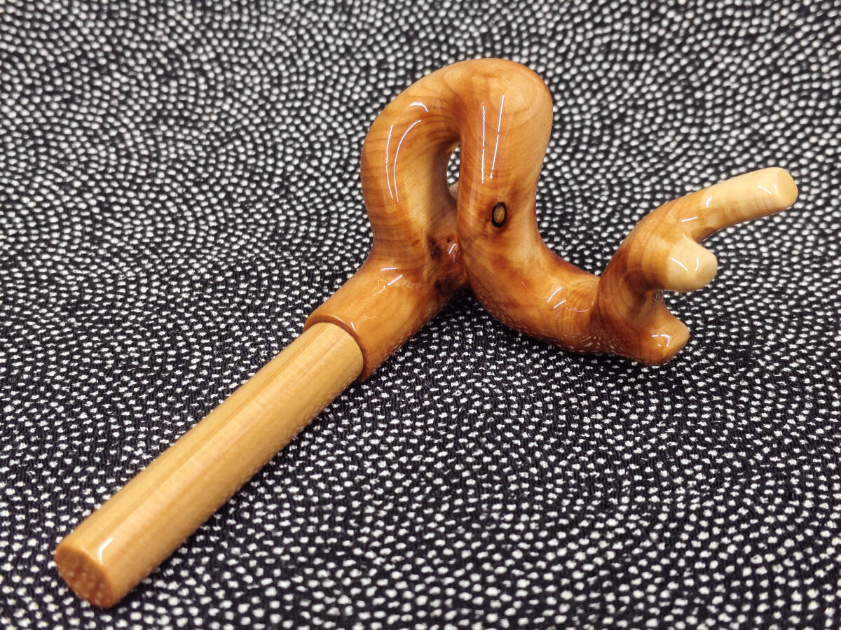 高級素材「ヒバ」を使用した竿枕です。釣り竿の安定を保ちながら、美しい自然の木目を楽しめる一品です。