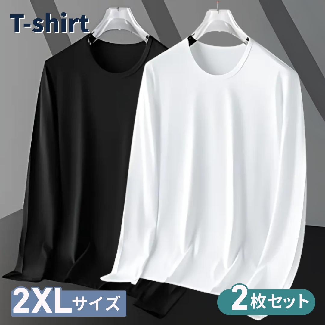 長袖Tシャツ 長袖 Tシャツ ロングTシャツ ロンT 無地 2XL 黒 白 2枚 メンズ シンプル カジュアル Uネック インナー インナーシャツ