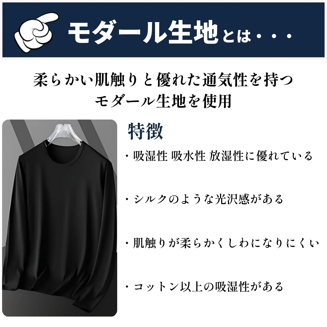 柔らかい肌触りと優れた通気性を持つモダール生地を使用。