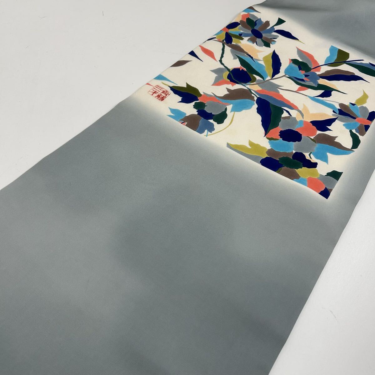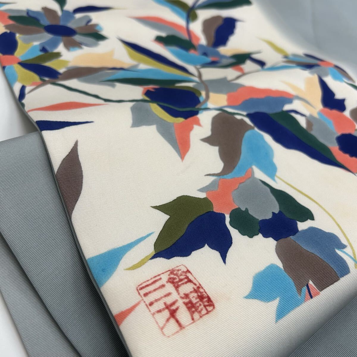 斉藤三才 名古屋帯 正絹 塩瀬 美しい染め 九寸 着物 F-3296