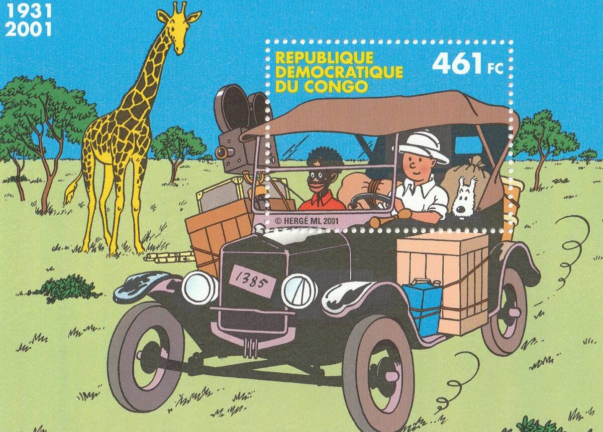 (コンゴ)2001年タンタンのアフリカ冒険小型シート、スコット評価7ドル(海外より発送、説明欄参照)