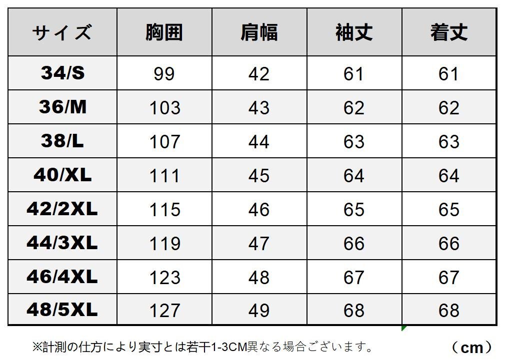 ★ご落札後お取引ナビやご要望欄にご希望サイズお知らせください★ 1930年代のUSAF TYPE A-2を忠実に再現した、クラシカルなフライトジャケット。 無駄のないデザインに、時代を超えて愛されるミリタリーの魅力を凝縮。 男らしさと上品さを兼ね備えた、存在感ある一着です。 素材には、植物タンニンで丁寧に鞣されたカウハイド(牛革)を使用。 染料仕上げによって革本来の質感や色ムラを活かし、奥行きある表情に。 着込むほどに柔らかくなり、自分だけの経年変化を楽しめます。 襟のカーブ、フラップ付きポケット、リブ袖など、細部まで当時の仕様を再現。 クラシックなディテールを現代のシルエットに落とし込み、快適な着心地に仕上げました。 カジュアルにもミリタリースタイルにも映える、汎用性の高い一着です。 レザーを愛する大人の男性に向けた、本格派のフライトジャケット。 ご自身の愛用品としてはもちろん、ギフトとしても非常におすすめです。 時を重ねるほどに味わいが深まる、長く寄り添える相棒になるはずです。 ■状 態 : 新品未使用 ■カラー :画像参考 ■実 寸 :背中側採寸 身幅/脇下すぐ ■SIZE: 画像参考 ■素材:カウハイド(牛革) ※サイズだけでは無く,必ず実寸をご確認下さい。 ※実寸は平置実寸。計測の仕方で若干の誤差がありますので参考程度。 |