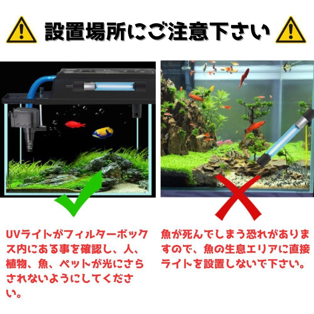 ・UVライトはフィルターボックス内などに設置し魚の生息エリアには設置しないで下さい。
