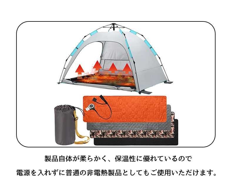 【7WAY滑り止め冬キャンプに欠かせない寝袋用電熱パッド】防寒保温寝袋電熱マット日常の様々なシーンで活用できると人気があります。活躍のシーン:生理痛/腰痛/ひざ掛け/肩掛け/足掛け/手/背中寒いなどの場合。あったかい電気ホットマットで寒い、痛みを緩みます。腰周りをあたたかくしてくれるシュラフ電気カーペットです。お尻を温める寝袋用電気座布団として。寝袋、テント、椅子で、ソファで、床で、ベッドでなどちょっと暖かくなりたい所に最適です。ホットマット裏面は滑り止めのデザインで、快適な寝姿勢を保ち、質の高い眠りをうながす。シュラフ電熱パッドはどんな場所でも簡単に暖まることができて。寒い季節に贈るプレゼントとして人気があります。キャンプなどのアウトドアレジャーに欠かせない寝袋発熱パッド。