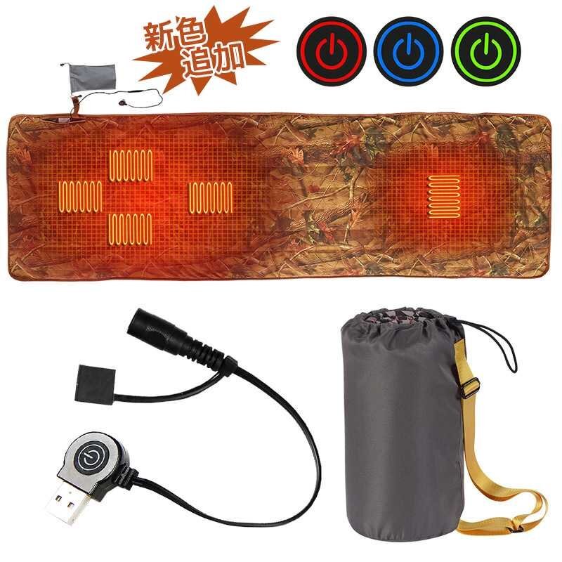 寝袋用発熱パッド 電熱マット ホットマット シュラフ 電熱パッド 電気カーペット USB給電 3段階温度調整 電気マット☆3色選択/1点