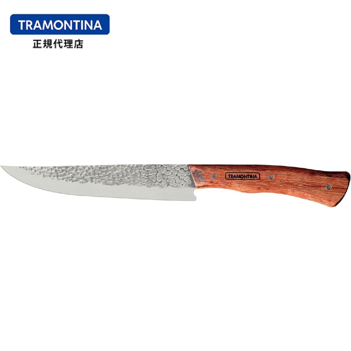 100年を超える歴史を持つブラジルキッチンウェアメーカー最大手「TRAMONTINA」の槌目模様包丁ノマードシリーズ。手打ち刃物にインスピレーションを得たハンマートーンの刃は美しく、飽きの来ないデザイン。