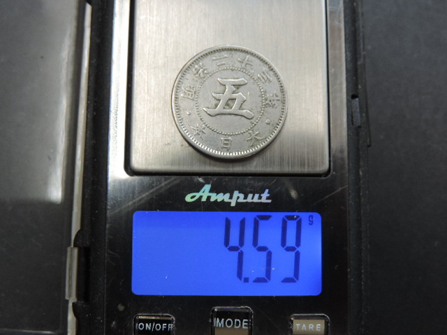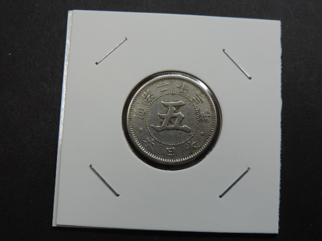 ★菊五銭白銅貨★ 明治二十三年 サイズ:約20,53㎜・重量:約4,56g 中古品・美品