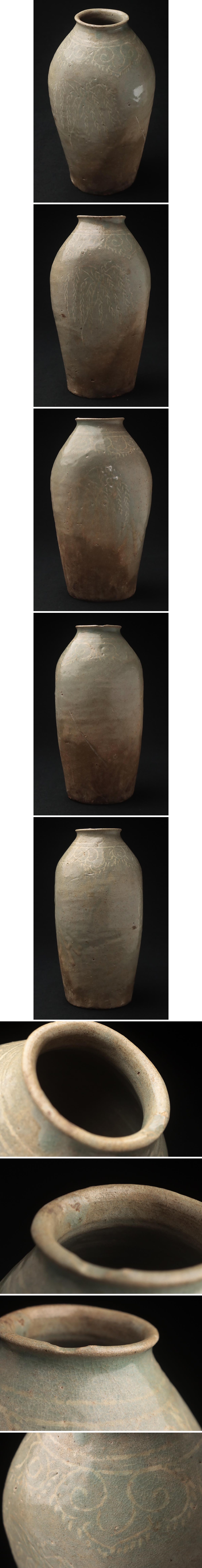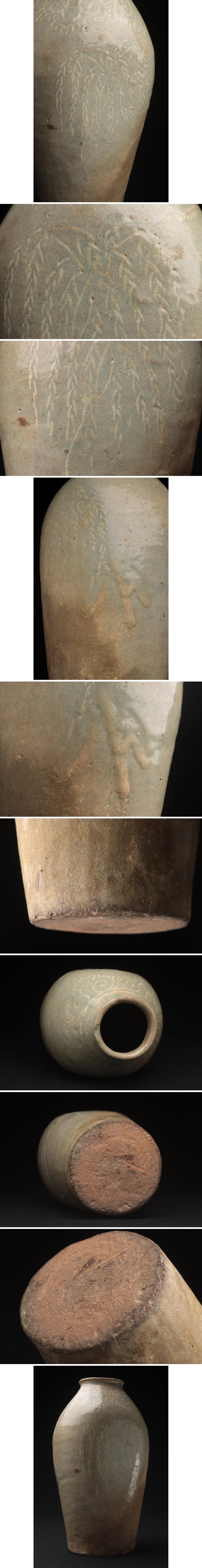 | ◆ 朝鮮美術 高麗時代 高麗青磁象嵌柳文瓶 高25cm・高麗青磁白象嵌花瓶・花入 朝鮮古陶 朝鮮古美術 ◆
