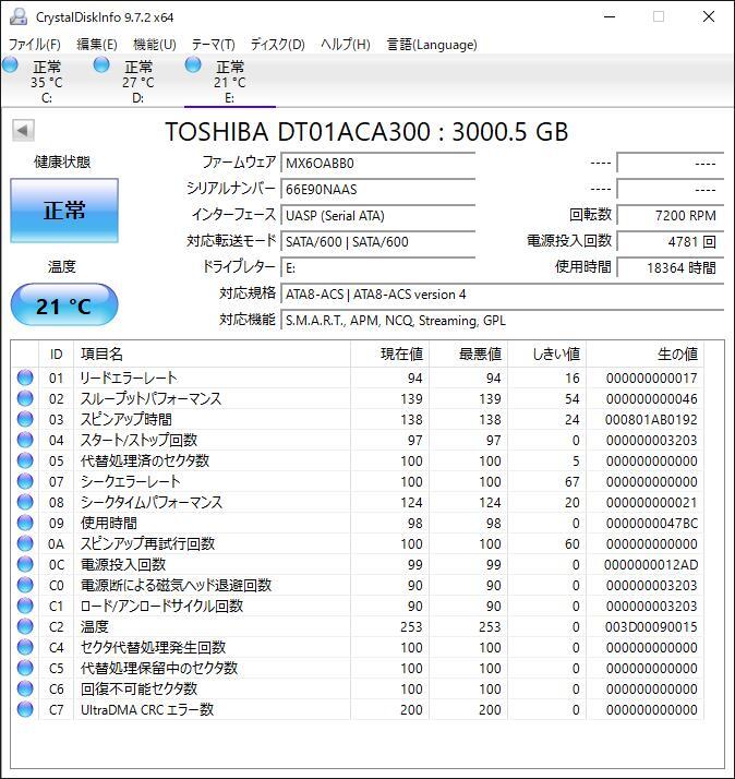 Crystal DiskInfo [正常] でした。