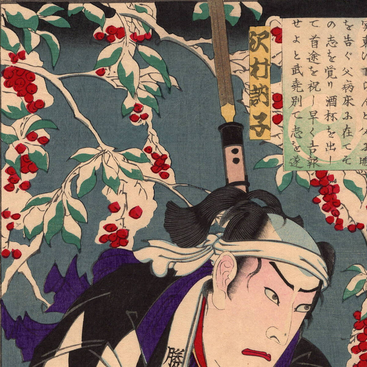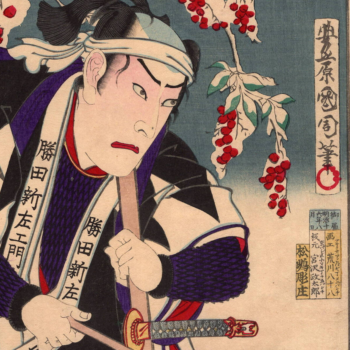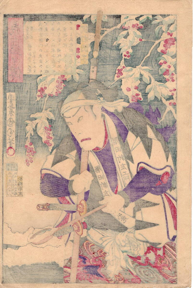 12-3 浮世絵【真作】豊原国周 国周 義士銘々伝 勝田新左衛門武尭 赤穂浪士 忠臣蔵 役者絵 木版画 明治 時代 当時摺 UKIYOE KUNICHIKA