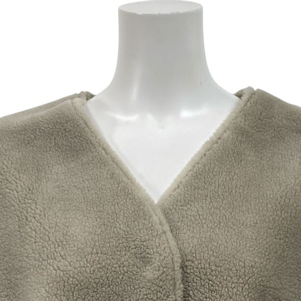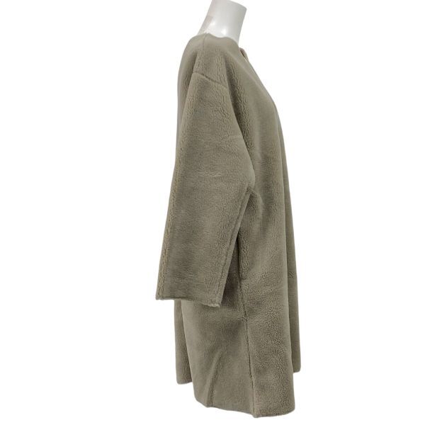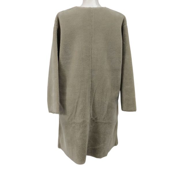 ノーカラーボアコート 長袖 ロング丈 Vネック Iライン アウター コート ジャケット オーバーサイズ ゆったりめ