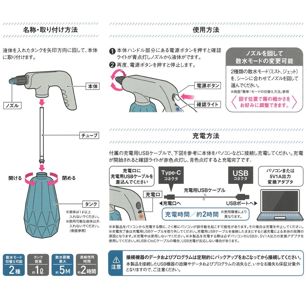| USB充電式 2WAY切替ノズル 電動散水ボトル | |