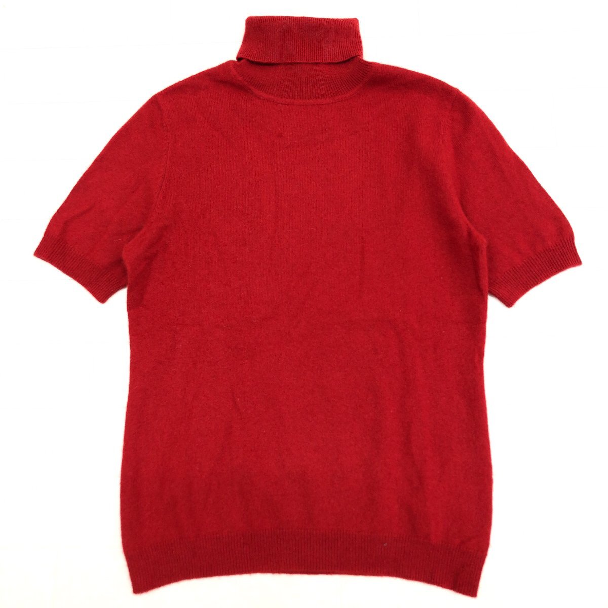 美品 UNIQLO ユニクロ 上質 カシミヤ100% タートルネック ニット セーター M 赤 レッド 半袖 カシミア ハイネック カットソー レディース
