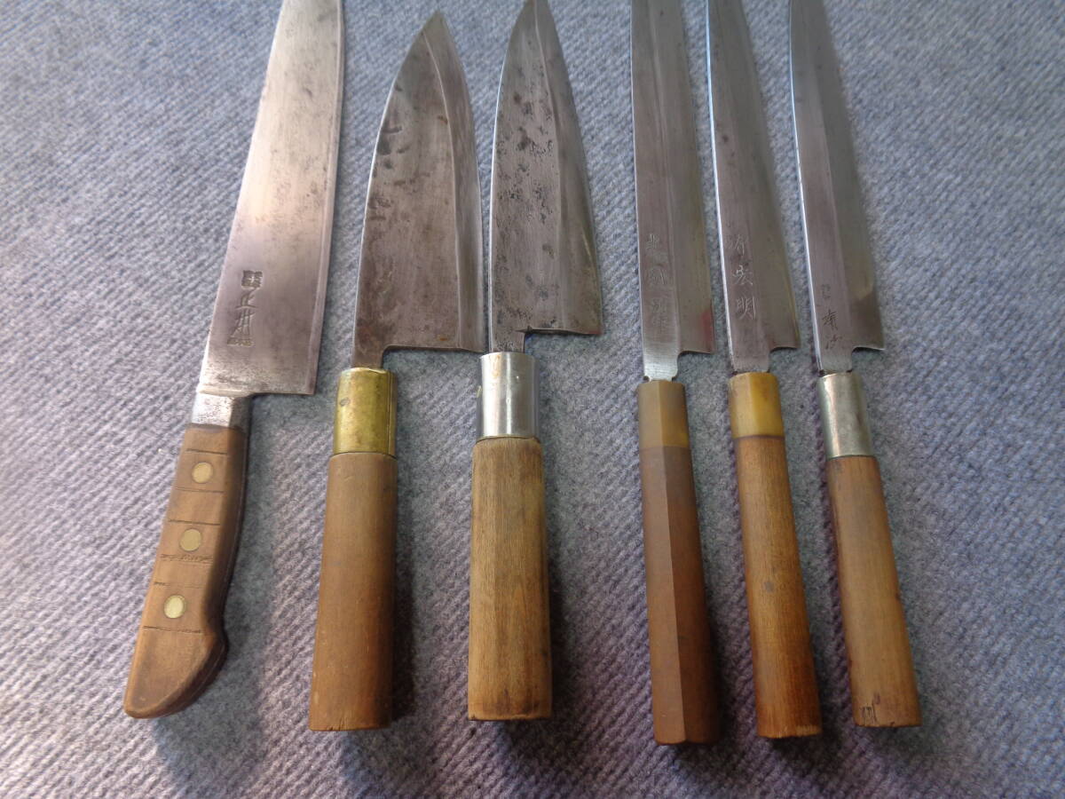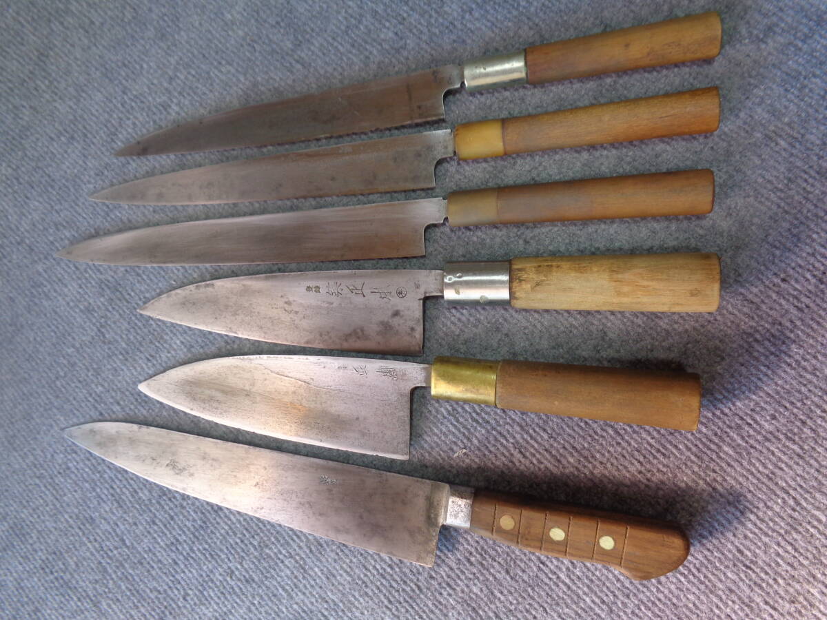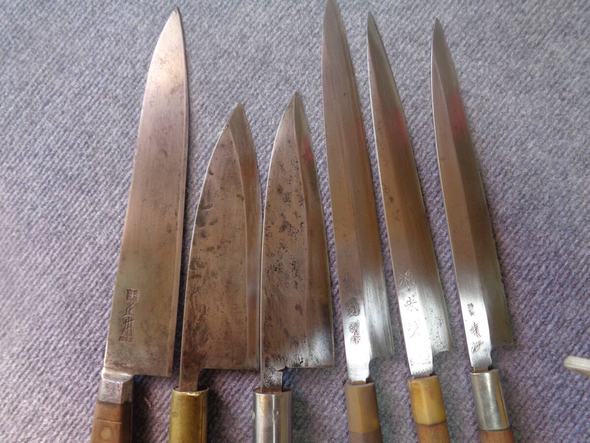 プロ 職人 中古包丁/正本銘、源宏明、光圀、 有次銘他 /和包丁 6点セット