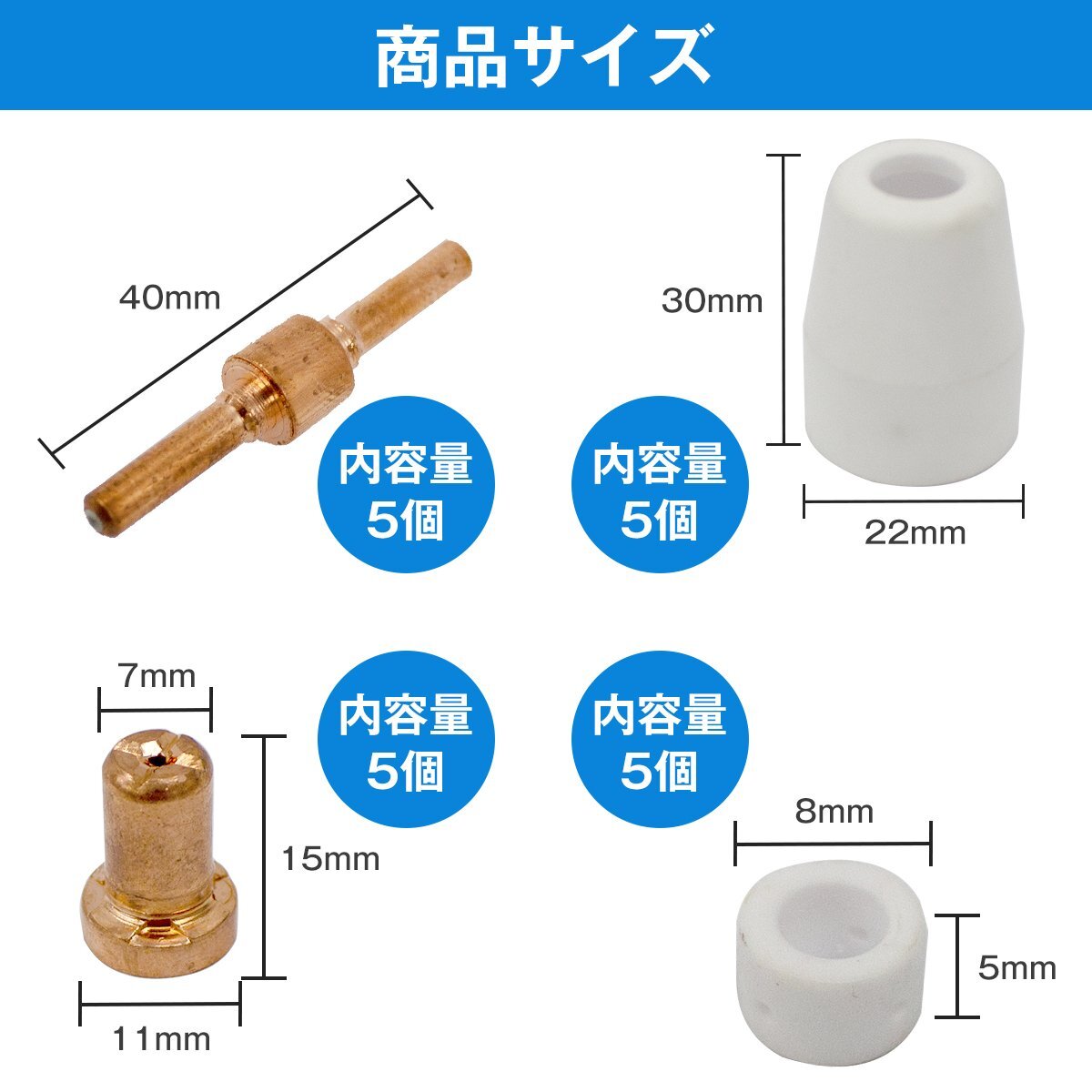 CUT-40 互換 5セット プラズマ カッター トーチ ロング ノズル チップ 先端 消耗品 切断機 鉄板 CUT40 5個 電極 PT-31 PT31