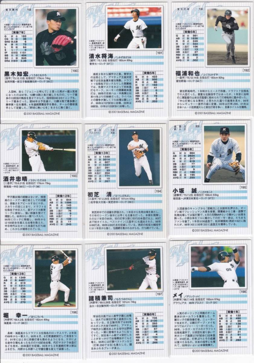●2001BBM/ATH【黒木,清水,福浦,酒井,初芝,小坂,堀,諸積,メイ】レギュラー9種 190~198:ロッテ