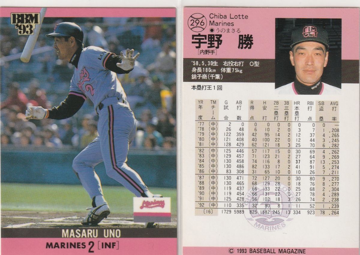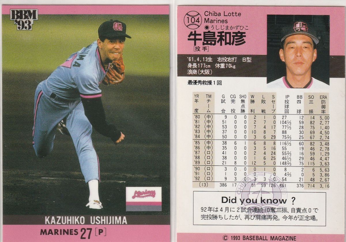 ●1993BBM【牛島和彦,宇野勝】BASEBALL CARD No.104,296:ロッテ R