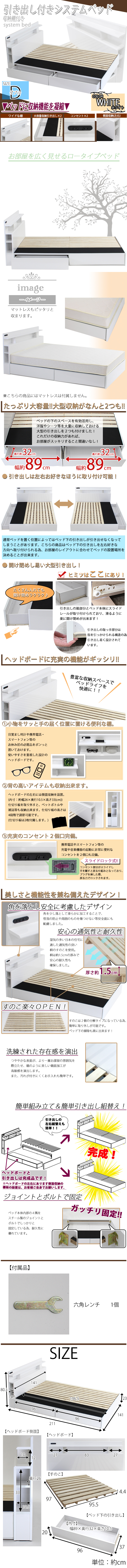 | 商品名 | 引き出し付きシステムベッド ベッドフレーム 収納棚付き ダブル ホワイト 白 ロータイプベッド システムベッド 低床ベッド すのこベッド すのこ ベッド フレーム 木製 引き出し コンセント付き 収納 収納ベッド 桐 lis29dwh |