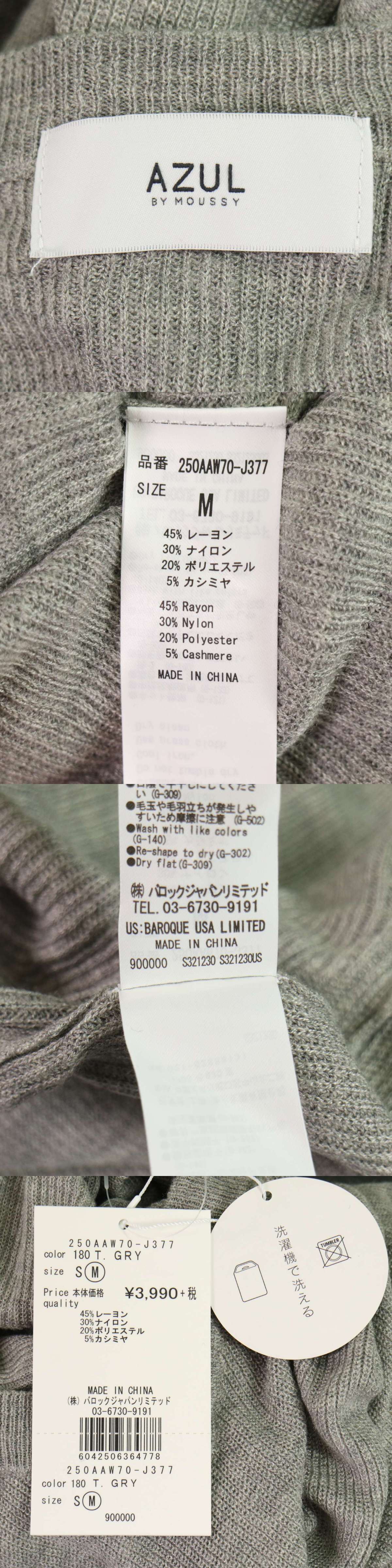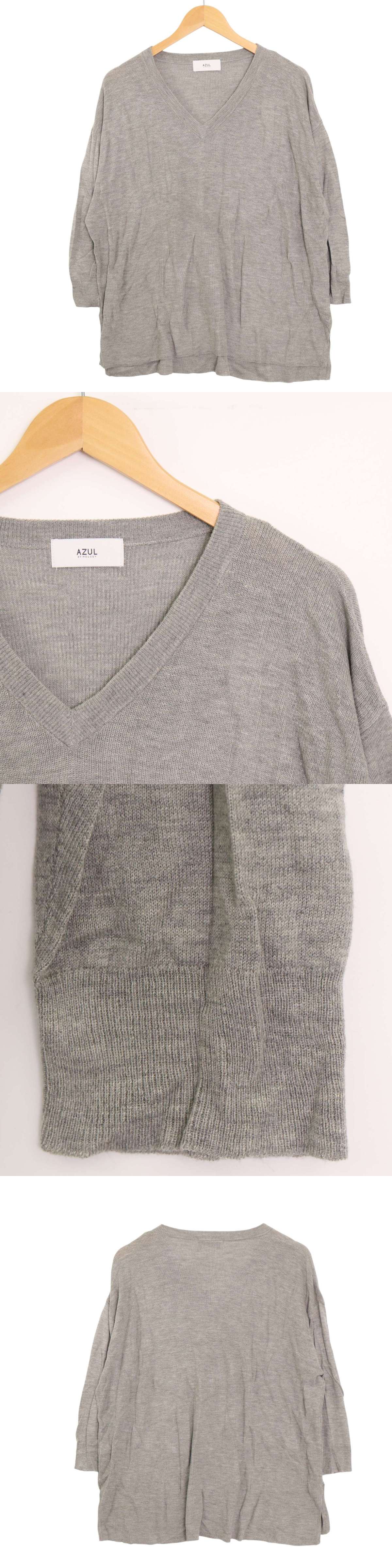 【新品 未使用】 AZUL by moussy アズール マウジー カシミヤ混★ Vネック ニット セーター Sz.M レディース 灰 グレー