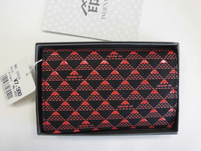 新品 INDEN-YA 名刺入れ たかね 赤富士 黒地赤漆 No.2804 印傳屋上原勇七 店舗保管品 甲州印伝 富士山 伝統工芸品