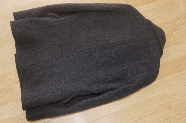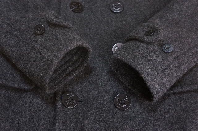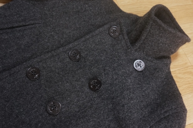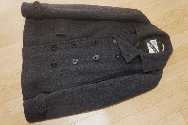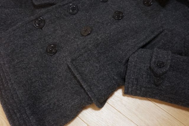 わりと柔らか目の生地、重さ約1000グラム、着回しの楽な Pコートです。