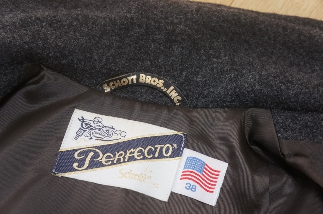 J452 即決 良品 Schott ショット ウール リーファー コート Pコート 38 チャコールグレー