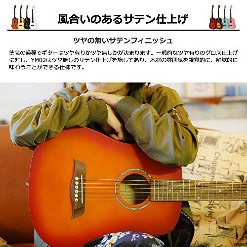 小ぶりながらも本格的なアコースティックサウンドをしっかり鳴らすことができ、自宅練習はもちろん、旅行やアウトドア、パーティーなど様々な場面での演奏に最適です。