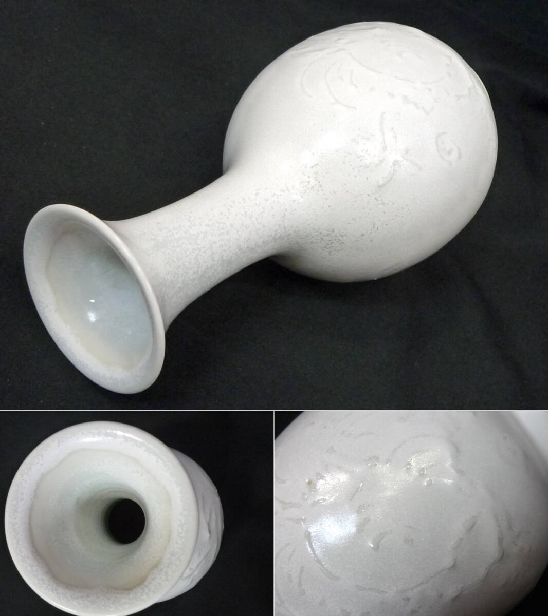 説明 ご覧頂き有難うございます。旧家蔵出 松本佩山 白磁花唐草文 花瓶 花活 花生 壺 芸術 有田焼 名工 銘有 茶道具 趣 逸品 在銘 骨董 座敷 和室 古風 希少 貴重 レア 手技 伝統工芸 お買得 になります。画像のものが全てです。