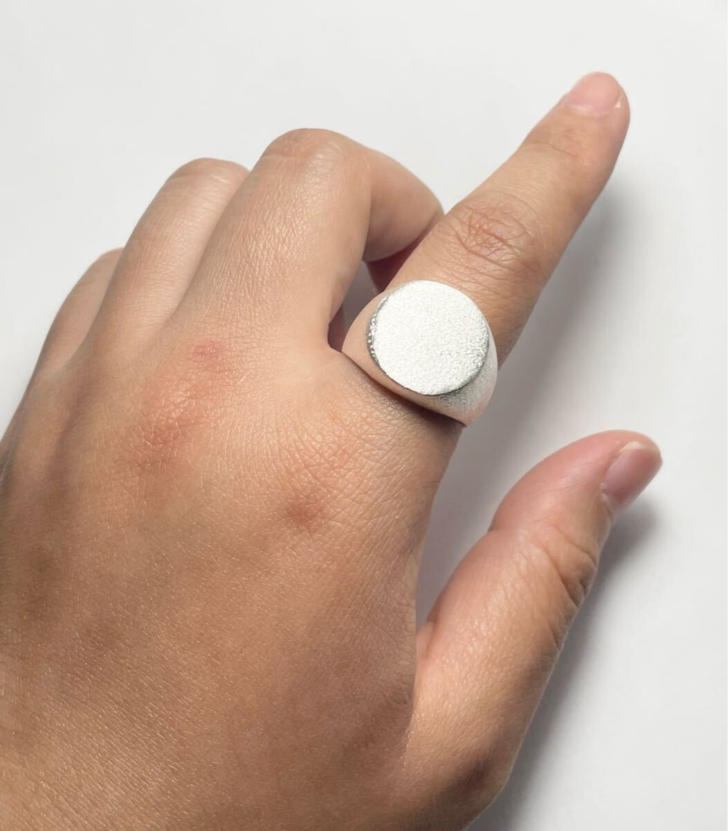 もしご自身が測った指輪よりもデザイン部分やリング幅が太めの物を購入の場合はサイズアップを考える方が良いです。