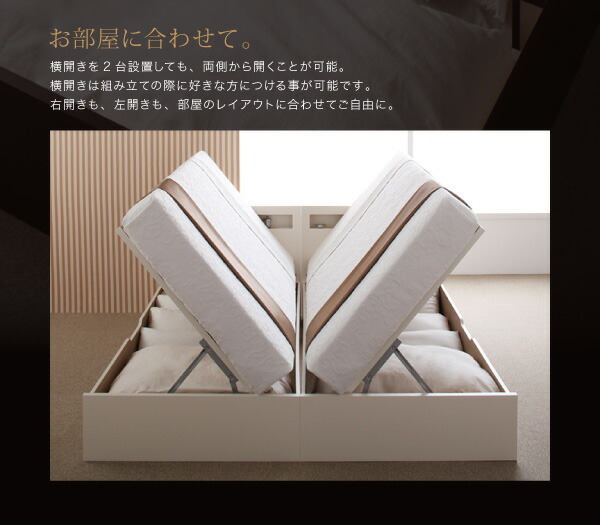 お客様組立 開閉タイプが選べる跳ね上げ収納ベッド 薄型スタンダードポケットコイルマットレス付き 縦開き シングル 深さラージ