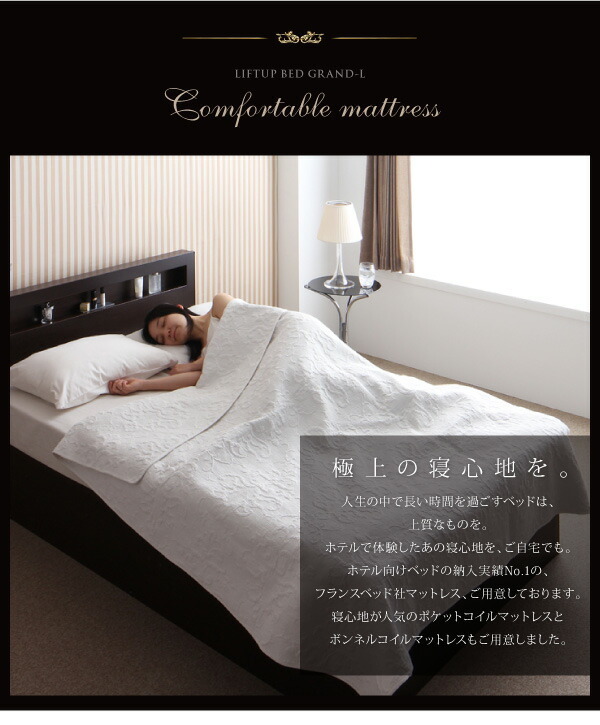 お客様組立 開閉タイプが選べる跳ね上げ収納ベッド Grand L グランド・エル 薄型スタンダードポケットコイルマットレス付き 縦開き シングル 深さラージ【フレームカラー:ナチュラル】です。