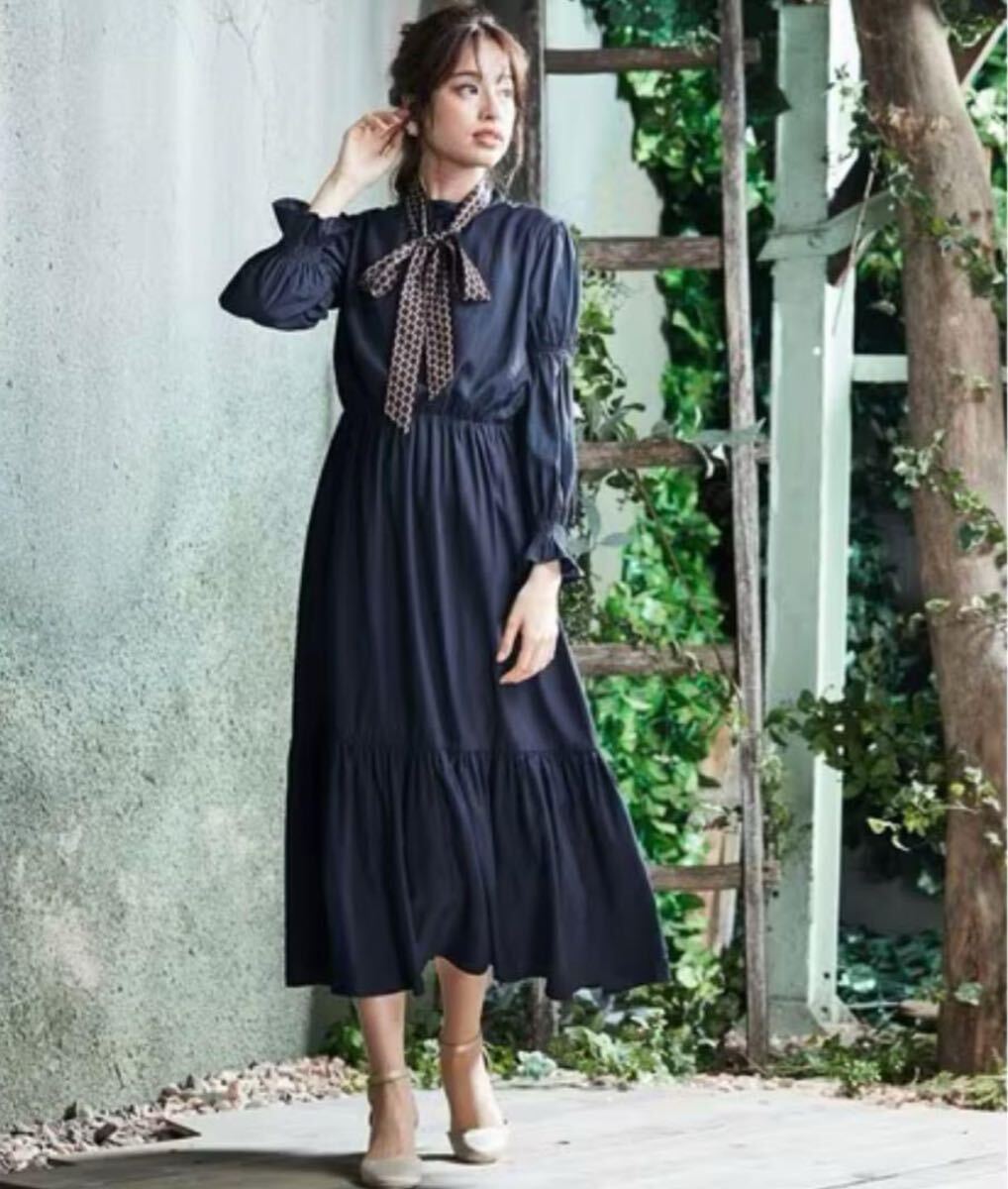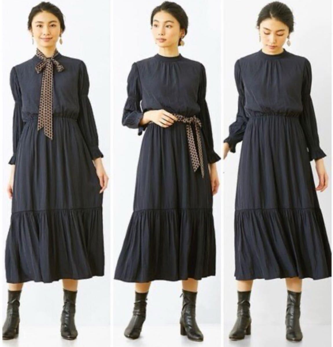 ・なめらかな肌触りのいい生地が特徴ティアードデザインがトレンド感のある着こなしにスタンドカラーがスタイリッシュな印象に付属のベルトがいいアクセントにウエストに巻くのはもちろん、首元の巻いて大人可愛い雰囲気に格上げ自分にしかない美しさを演出してくれるニューフォーマルスタイルドレスシーンを選ばない自由な着こなしを楽しんでください