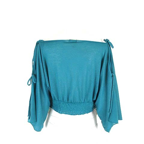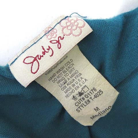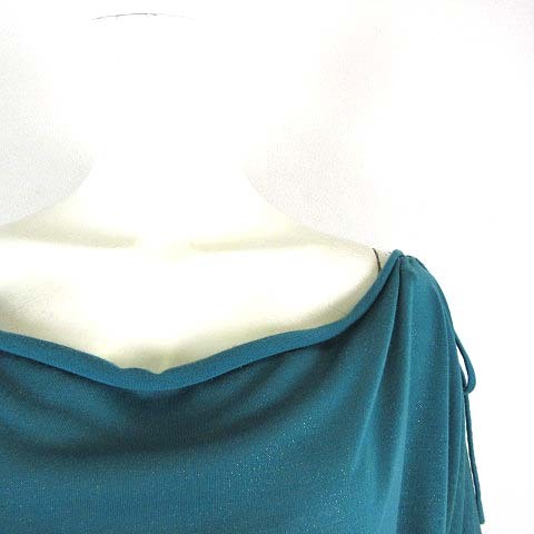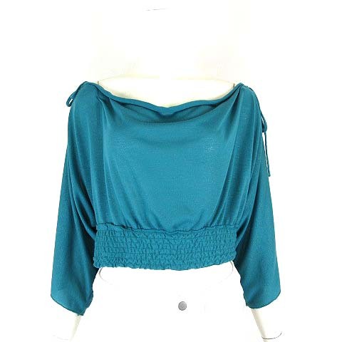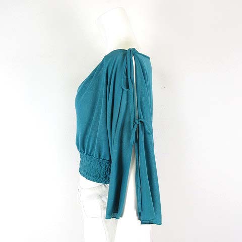 Judy jr. カットソー ブラウス オフショル シアー シフォン ラメ ショート丈 ドルマンスリーブ スリット リボン 7分袖 M ミントブルー