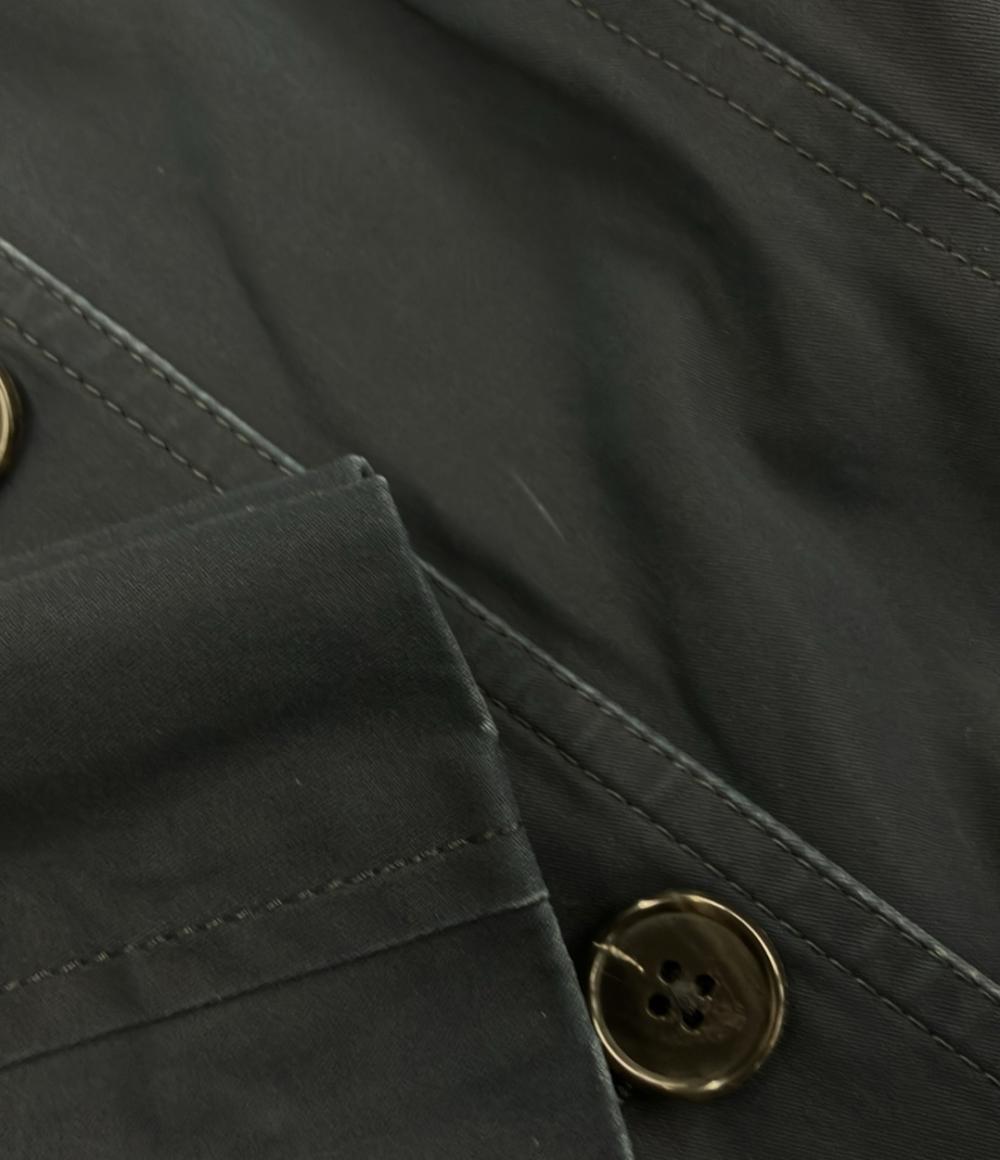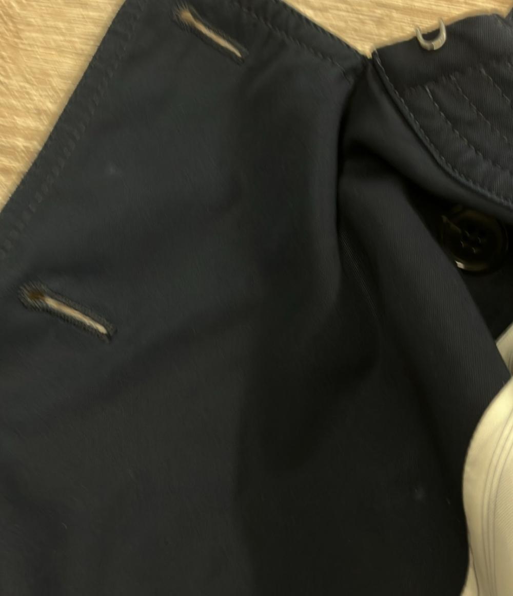 | ・全体的:シワ 色褪せ 保管による残臭 ・前身頃 内側 襟 袖口 裾 ポケット:スレ ・ベルト:スレ 糸引き |