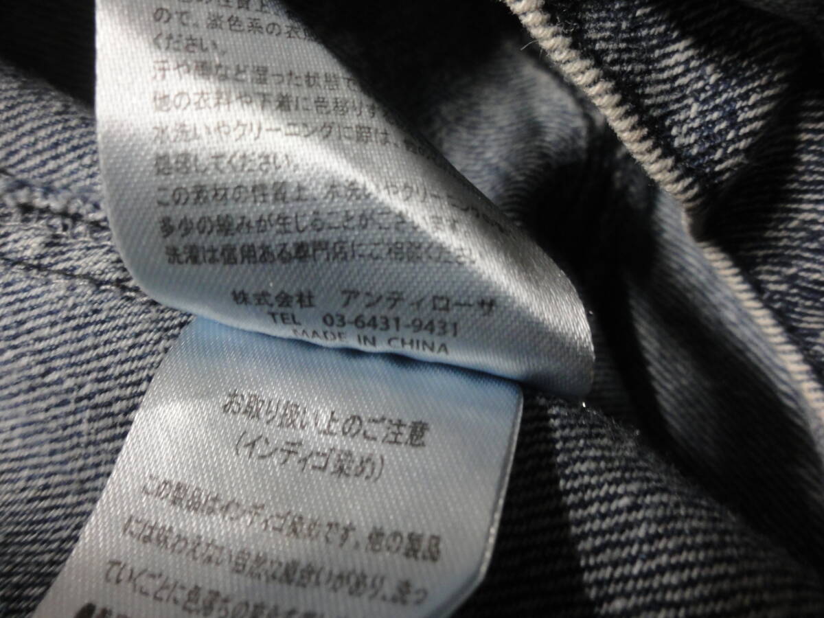 CASPER JOHN等多数のブランド展開している高級アパレルメーカー・アンティローザ取扱いのダメージ加工デニム地・袖部に豪華な薔薇バラ刺繍デザイン付き・高級ジージャン系ブルゾンタイプのお洒落でかっこいい希少レアモデルです。
