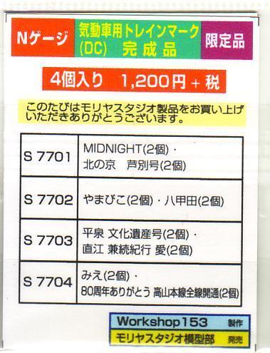 モリヤスタジオ S7703 Nゲージ気動車用トレインマーク