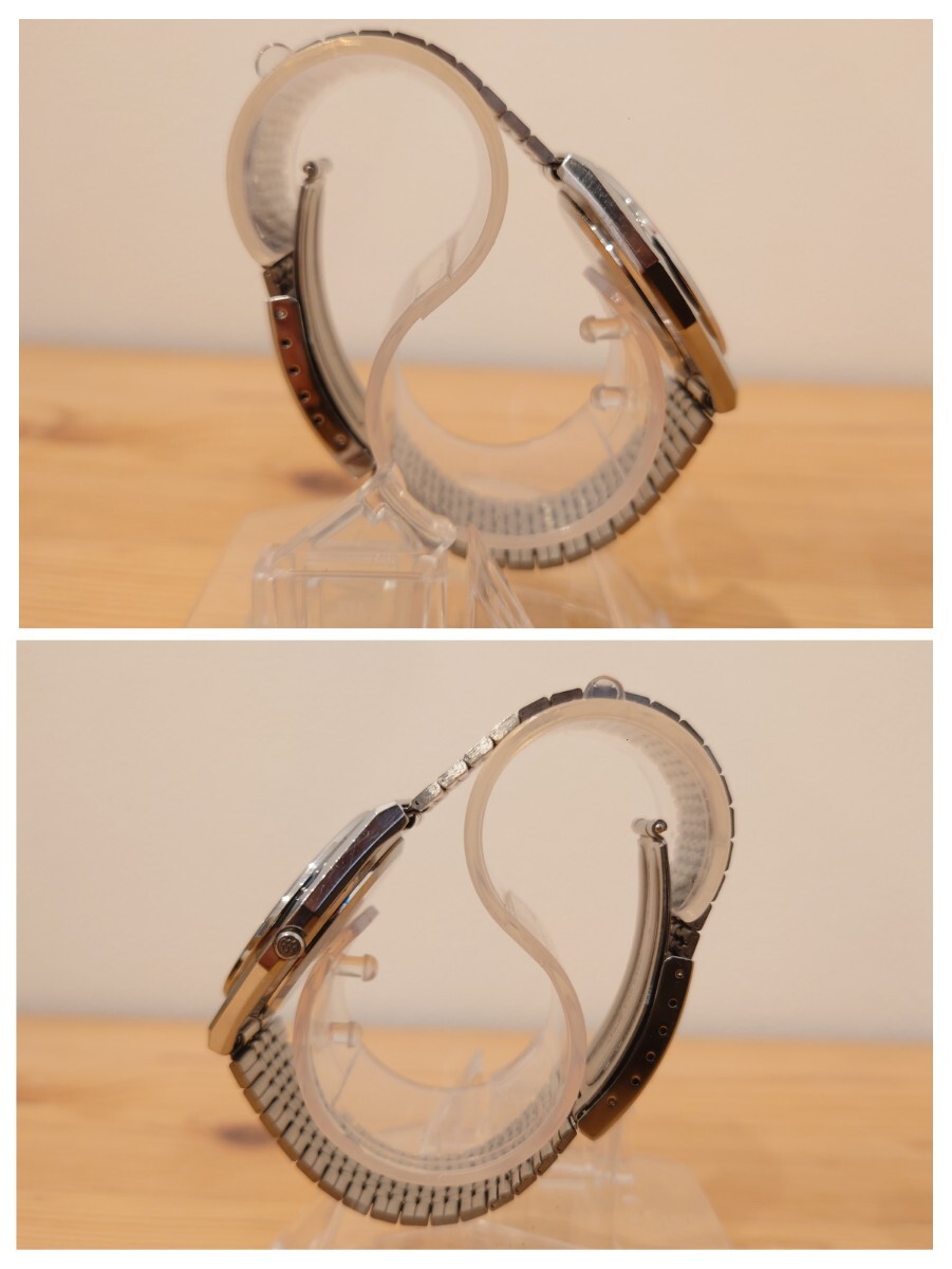 多少ケースに打痕、文字盤に汚れと風防にキズが多数ありますがケース、ベルトは比較的にきれいです。2019年2月に電池交換しましたが現在電池切れになりましたのでジャンク扱いとさせて頂きます。
