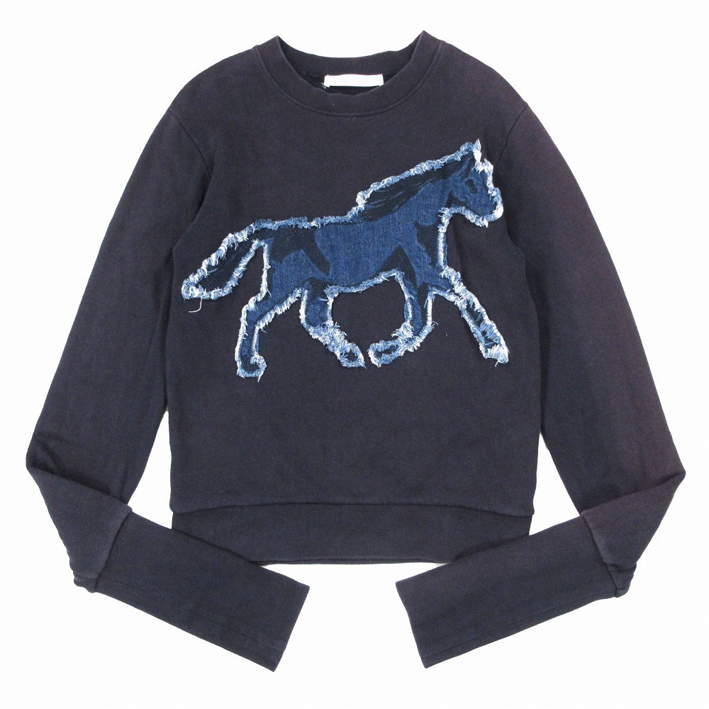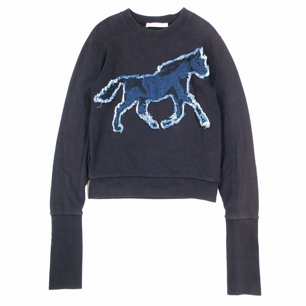 【SEE BY CHLOE シーバイクロエ スウェット トレーナー ホース 馬 異素材 デニム切替 裏起毛 34 XS ネイビー レディース】 | |