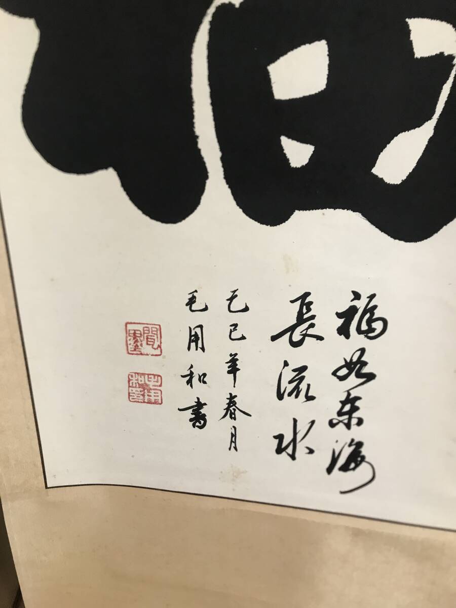 掛軸 中国 毛用和作『福』一字軸  茶掛 書  【模写】